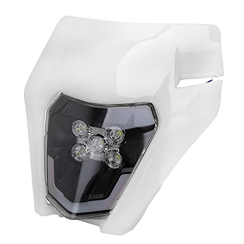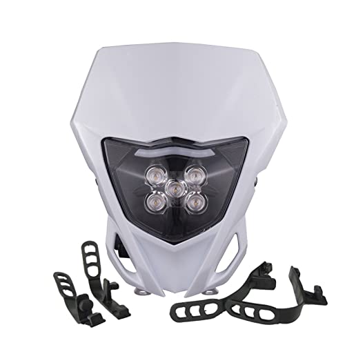 JFG RACING Motorcycle Headlight LED Universal Headlight Housing Light Headlight for EXC250 SX250 SXF250 EXC450 SX350 SXF450 EXC525 640LC4 Dirt Bike Motocross Enduro Supermoto-White