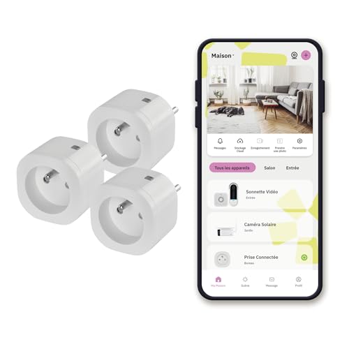 OMAJIN by Netatmo 3-pack programmerbara anslutna uttag (typ E) programmerbara, förbrukningsspårning, fjärrkontroll, energimätare, ingen hubb krävs, 2,4 GHz wifi/Bluetooth, 16A/3 680 W, OBU-3SP-SE