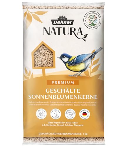 Dehner Natura Premium foder för vilda fåglar, solrosfrön skalfria, året-runt-foder proteinrik/energirik, högkvalitativt fågelfoder för vilda fåglar, 1 kg