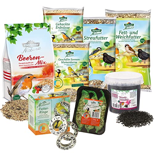 Dehner Natura Premium foder för vilda fåglar, startset för fågelfoder, året runt-foder, energirik, kraftgivande, högkvalitativt fågelfoderset för vilda fåglar, 7 delar