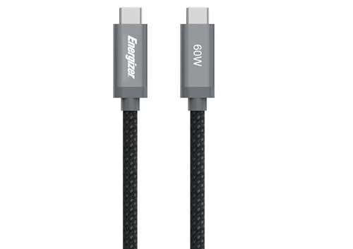 Energizer - USB-C till USB-C-kabel - PD snabbladdning 60 W - typ C flätad nylon, kompatibel med iPhone 15 Plus Galaxy S23 Ultra Plus S22 (2M) - svart