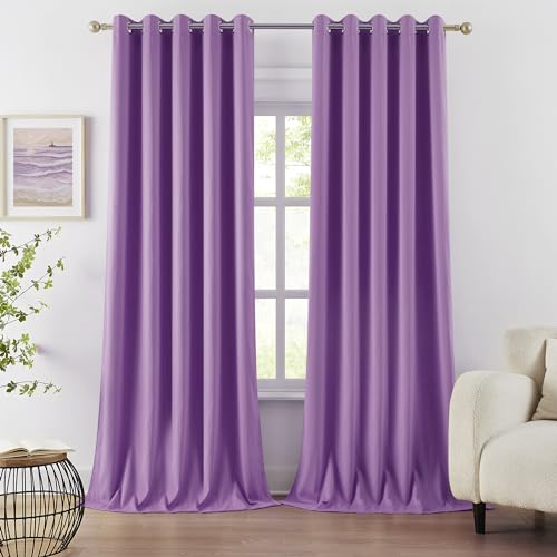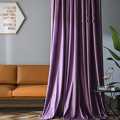 ALIAOFORZ Sammetsgardiner för vardagsrum, supermjuka plysch mörkläggningsgardiner med öljetttopp, enfärgade värmeisolerade mocka-gardiner för sovrum hotell – lila 250 x 270 cm (98 x 106 tum)
