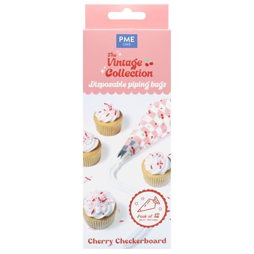 PME VD24IB064 12 engångs glasyrpåsar spritspåsar, alla hjärtans dag körsbär schackbräde, plast