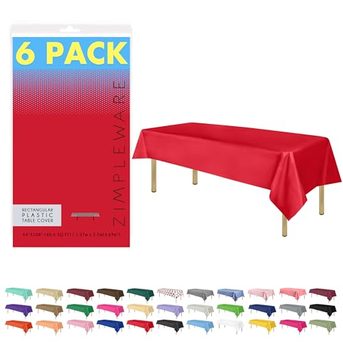 Röd standard engångsduk i plast [6-pack] 137 x 274 cm rektangulärt bordsskydd för inomhus- och utomhusbruk av Zimpleware