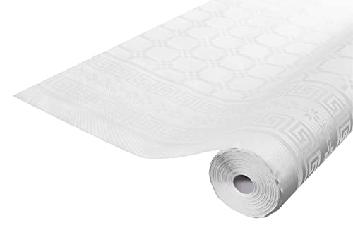Pronappe bordsduk R480001I engångsduk av damaskpapper längd 100 m bredd 1,20 m färg vit damaskpapper med elegant och klassiskt universalmönster