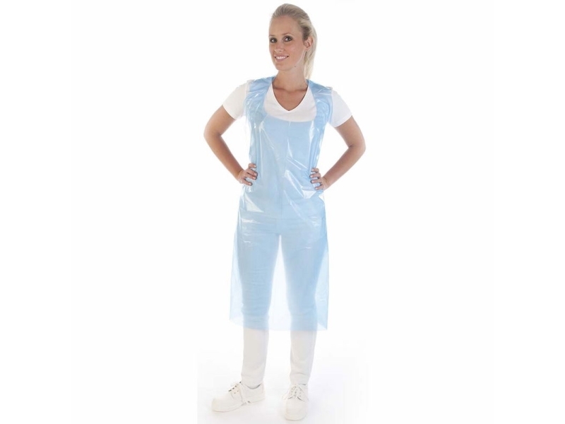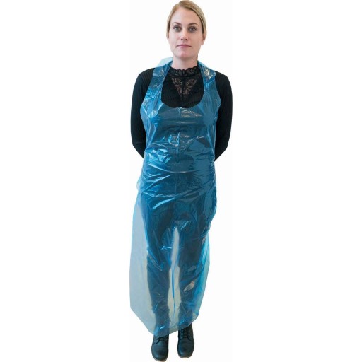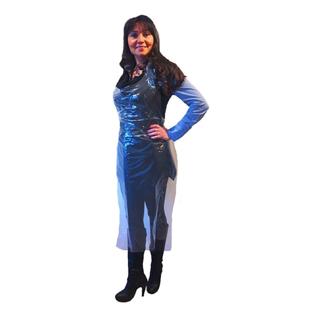 Engångsförkläde, lång, blå, LDPE, 100 st
