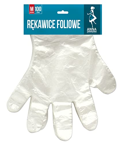 ANNA ZARADNA Engångshandskar 100 stycken/50 par (1-pack)/storlek M/foliehandskar plast rengöringshandskar genomskinlig/tillverkade av HDPE-folie/hål för upphängning