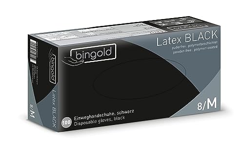 Engångshandskar av svart latex, pulverfri, storlek M, 100-pack