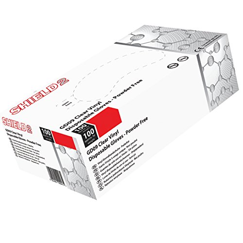 shield 2 transparenta engångshandskar vinyl puderfria – medium (låda med 100)