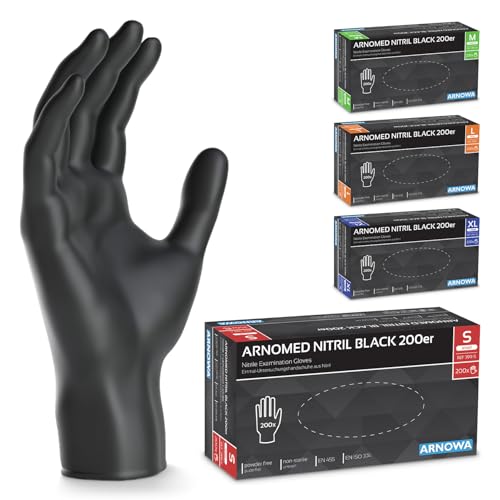 ARNOMED 200 x engångshandskar svart, engångshandskar S, nitrilhandskar puderfria, handskar engångs latexfria, gummihandskar engångs, handskar nitril, engångshandskar S, M, L och XL