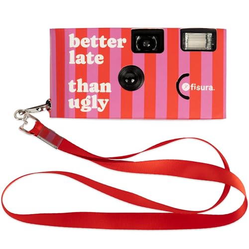 Fisura – Engångskamera “better late”. Engångskamera med blixt, 17 exponeringar i svartvitt. Hängare ingår. Perfekt för bröllop, fester eller speciella tillfällen.
