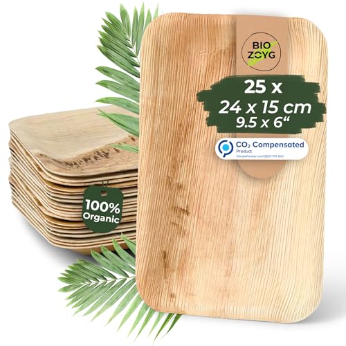 BIOZOYG 25 x palmbladstallrikar 24 x 15 cm – engångstallrikar komposterbara och naturliga – festservis palmtallrikar miljövänliga