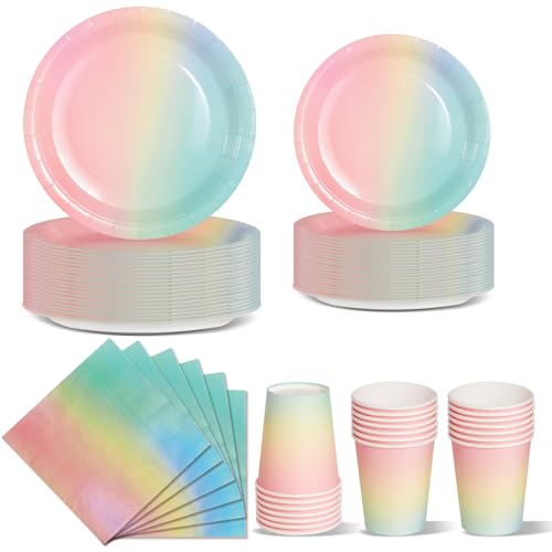 Nkaiso Festservis 96 st regnbåge fest dekoration flicka Dambini födelsedag festtillbehör set inkluderar engångstallrikar av papper party koppar servetter -24 gäster