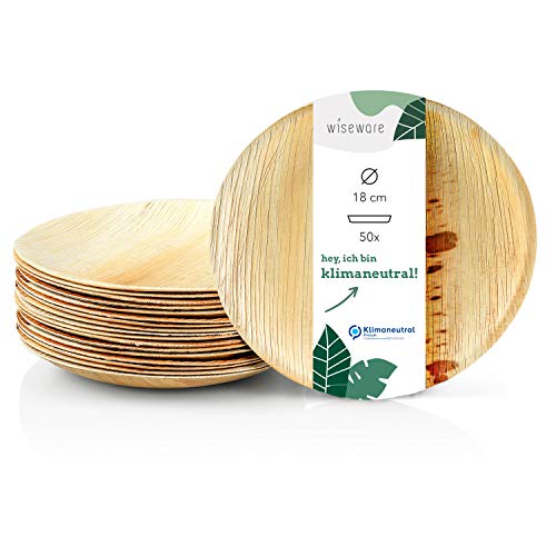 Wiseware Palmbladstallrik – 50 stycken runda engångstallrikar Ø 18 cm – biologiskt nedbrytbart palmbladsporslin – komposterbart festporslin – ekologisk engångsservis