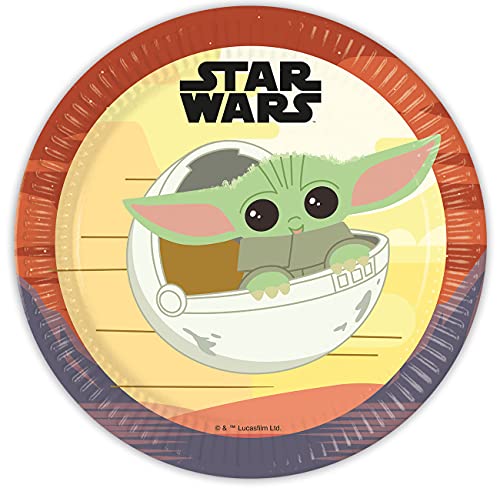 Procos 93446 – partytallrik Star Wars Mandalorian, storlek 23 cm, 8 stycken, engångstallrikar av papper, barnkalas, festporslin, FSC® mix