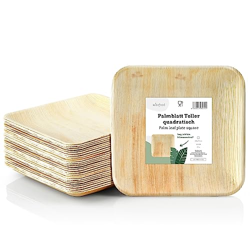 wiseware palmbladstallrik – 25 stycken engångstallrikar fyrkantiga 24 x 24 cm – biologiskt nedbrytbar servis med palmblad – komposterbart festporslin – ekologiska engångsservis (25, 24 x 24 cm)