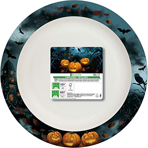 Procos 94304 – Tallrik halloween, diameter 24 cm, komposterbar, 8 stycken, engångstallrikar, papperstallrikar