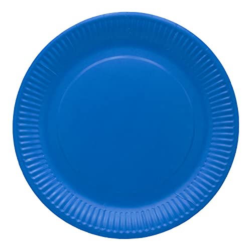 Engångstallrikar 20 st, färgglada och runda, nya: utan plastbeläggning, hållbar FSC-kartong, miljövänlig förpackning, blå