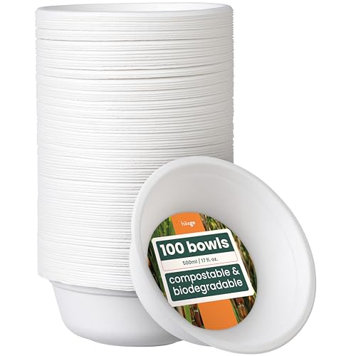 100 Stabila Pappersskålar i Sockerrör (⌀ 15 cm) - Mikrovågsugnssäker, Miljövänlig, Biologiskt Nedbrytbar - Festtallrikar, Engångstallrikar för Picknick, Bufféer, Grillfester