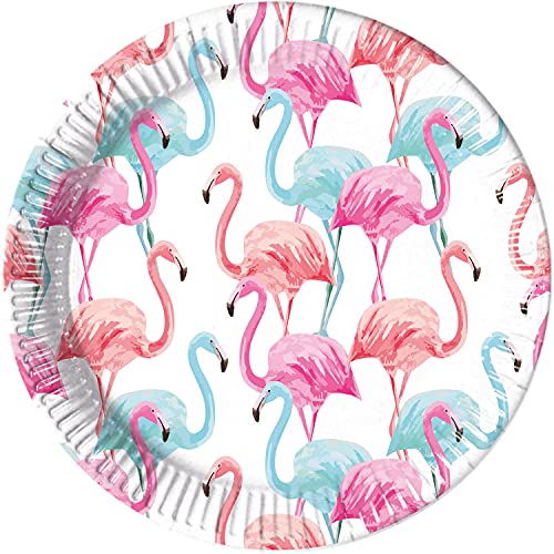 Procos 93460 – Party-tallrik Flamingo Tropical, storlek 23 cm, 8 stycken, engångstallrikar av papper, barnfödelsedag, festporslin, FSC