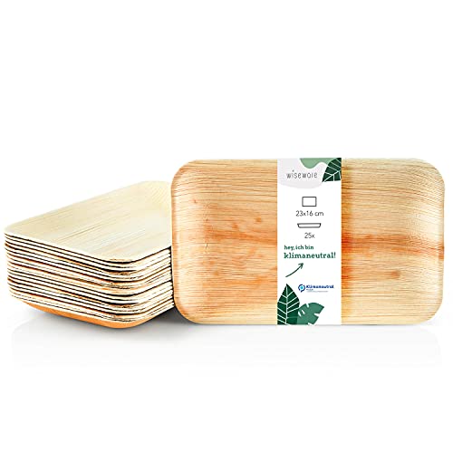 wiseware Palmbladstallrik – 25 stycken rektangulära engångstallrikar 23 x 16 cm – biologiskt nedbrytbart palmbladsporslin – komposterbart festporslin – ekologisk engångsservis