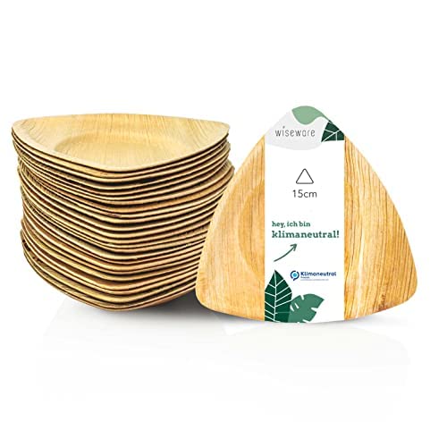 wisefood palmbladstallrik – 100 stycken engångstallrikar triangulära 15 cm – biologiskt nedbrytbar engångs palmbladsservis – perfekt som snackstallrik, fingermattallrik eller salladstallrik