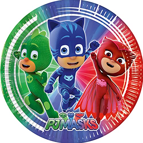 Procos 93441 – partypallrik PJ Masks, storlek 23 cm, 8 stycken, engångstallrikar av papper, barnfödelsedag, festporslin, FSC
