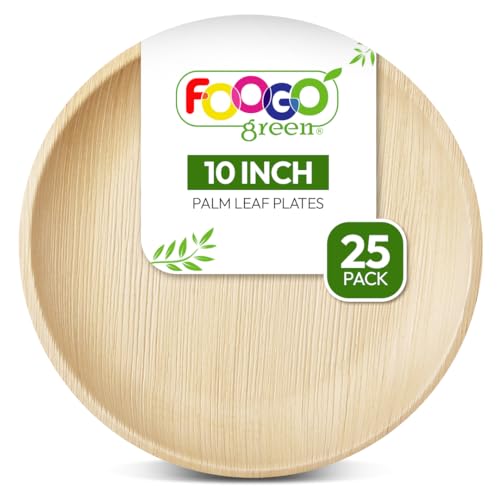 FOOGO Grön 25 engångstallrikar, 25 cm (10 tum) stora runda, miljövänliga, biologiskt nedbrytbara komposterbara tallrikar, som träplattor, bambupallrikar, papperstallrikar för varm mat,