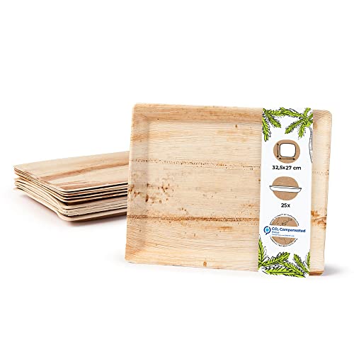 BIOZOYG 25 stycken palmbladstallrikar 25 x 25 cm | stilsäker, komposterbar och naturlig | engångstallrikar