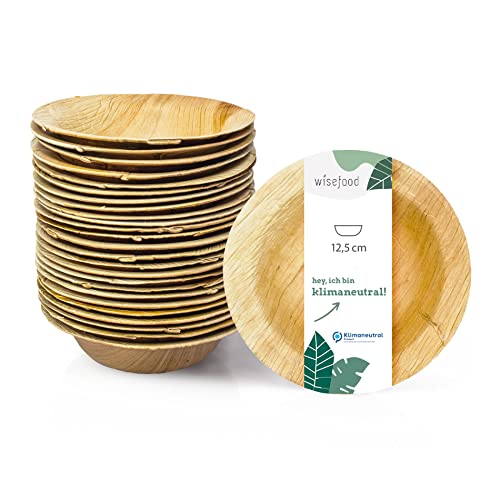 wisefood Palmbladskål – 100 stycken engångstallrikar djup rund Ø 14 cm – biologiskt nedbrytbart palmbladporslin – engångsporslin perfekt som sopptallrik, salladstallrik eller pastatallrik