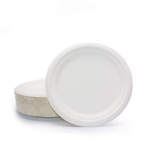 100 Stabila Papperstallrikar i Sockerrör (⌀ 18 cm) - Mikrovågsugnssäker, Miljövänlig, Biologiskt Nedbrytbar - Festtallrikar, Engångstallrikar för Picknick, Bufféer, Grillfester