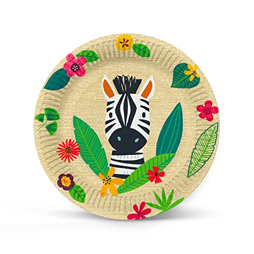 PAW – papperstallrikar (23 cm) I 10 stycken I engångstallrikar färgglada av kartong I perfekt för bröllop, nattvardsgång, fester, födelsedag I tryckt med vattenbaserade färger I färg: Jungle Friends