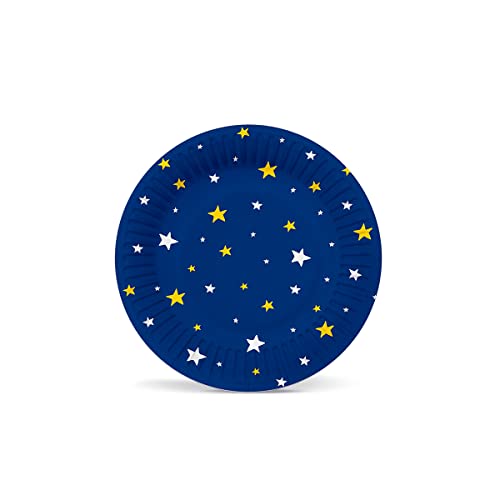 PAW – papperstallrikar (18 cm) I 10 stycken I engångstallrikar färgglada av kartong I perfekt för bröllop, nattvardsgång, fester, födelsedag I tryckt med vattenbaserade färger I färg: Starlit Sky