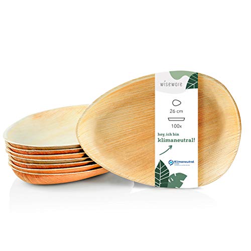 Wiseware Palmbladstallrik i droppform – 100 stycken engångstallrikar ovala Ø 26 cm – biologiskt nedbrytbart palmbladsporslin – komposterbart festporslin – ekologisk engångsservis (100, Ø 26 cm)
