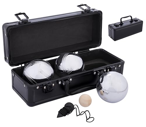 Engelhart - 010124 - Set med petanquekulor i metall, 3 bollar 74 mm, 720 g, med svart aluminiumväska 26,5 x 10 x 9 cm