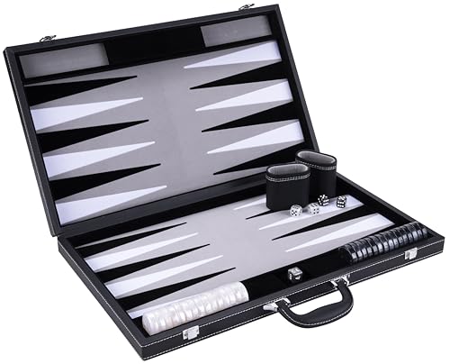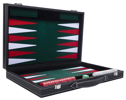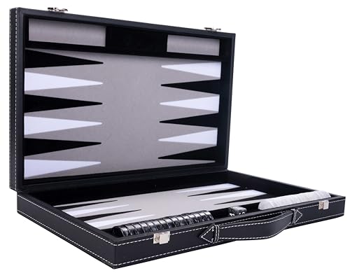 Engelhart – 250520 – Backgammon Deluxe 15" (38 cm) – Elegant Konstläderväska med Filtinsida – Pärlemobrickor och Tärningar Ingår
