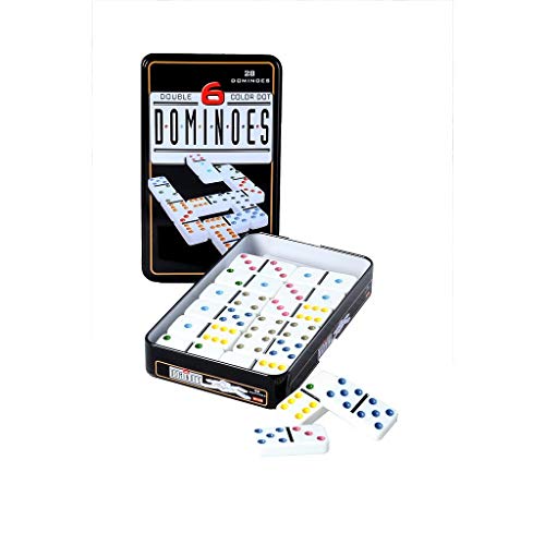 Engelhart - Grote kleurrijke dominostenen in een metalen doos - dominospel voor volwassenen en kinderen (Dubbel 6)