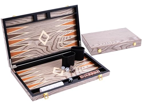 Engelhart – 250543 – Backgammon Deluxe 18" – Elegant Spel med Lackad Ebenholtsfanér – Grå
