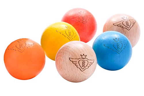 Engelhart - 010145-2 naturliga och 4 vackra färgglada träklot för boule-spel - 30 mm - 10 g