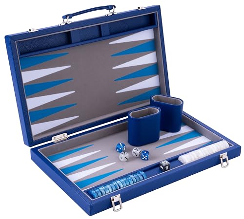 Engelhart – 250521 – Backgammon Deluxe 15" (38 cm) – Strategispel i Elegant Konstläderväska – Inklusive Filt, Pärlemobrickor och Tärningar