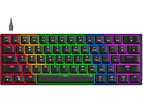 Speedlink ATMOS - mekaniskt RGB gaming tangentbord 60%, trådbundet, brunt Brytare, robust stålplatta, USB-C-kabel löstagbar, bakgrundsbelyst, amerikansk layout engelsk QWERTY, svart