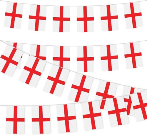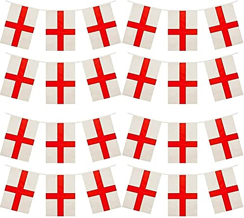 10 m St George Cross Bunting England engelsk banderoll 25 st stora fyrkantiga flaggor St Georges Day Euro Cup Cricket Rugby fotboll VM Cup sportevenemang gatufest dekoration