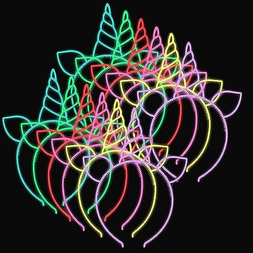 Sunshine smile 12 stycken enhörning ljus diadem, enhörning hårband barn, 6 färger enhörning pannband, hårband för flickor, huvudtillbehör festdekoration, påsk födelsedag fest karneval