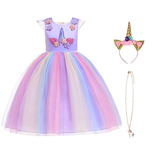 EMIN Flicka Enhörning Kjol, Barn Unicorn Princess Klänning, Fantasiprinsessklänning, Enhörningshalsband, Enhörningshårband, Enhörningsväska, Födelsedag, Fest, Jul,Halloween, Karneval, Cosplay