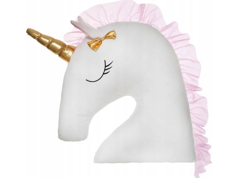 Idena 40258 – gosig kudde enhörning, gosig dekorativ kudde med gyllene horn, öron och ansikte, kudde för spädbarn och barn, ca 45 cm