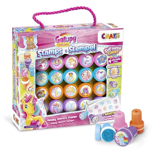 CRAZE GALUPY Unicorn barnstämplar present 20 tvättbara stämplar för barn Enhörning Bläckstämpel Galupy Leksak Barnstämplar Olika Modeller 4 Färger Kreativa Spel för Barn