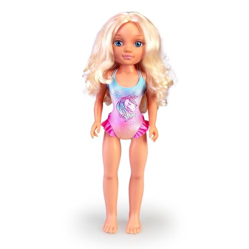 Nancy - En dag med magisk handduk, blond och lång hårdocka, en sommar baddräkt, Solglasögon och en handduk med en enhörning som tillbehör, Leksak för pojkar och flickor +3 år, Berömd (NAC19000)