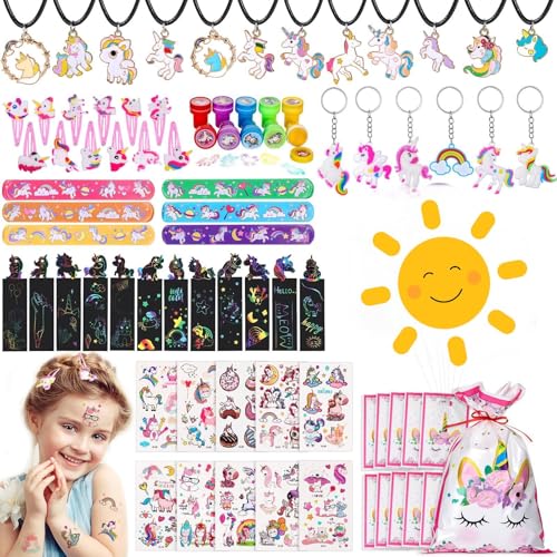 Kareeran Enhörning Party leksak, Födelsedagspresent Party Tassen Vullers, Party Gunsten Ballon Sleutelhangers Stamper Slap Armband Haarclips Ring Tijdelijke Tattoos Bladwijzer Party Tassen Gunsten
