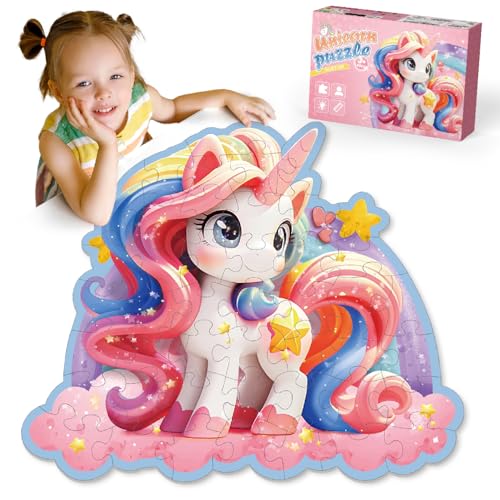 Enhörning golvpussel leksak för flickor – enhörning presenter för barn 3-4 5 6 7 8 år, 45 delar stort vackert rosa pusselleksak från 3-8 år