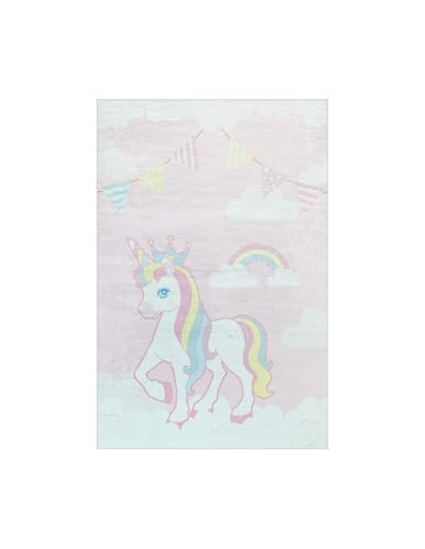 Homemania Pink Unicorn-tryck matta-för barn - heminredning - halkfri-för vardagsrum, sovrum, sovrum, flerfärgad, polyester, bomull, 120 x 180 cm